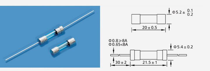 產品名稱: 5J Φ5.2×20玻璃保險絲管(快斷型)多國認證