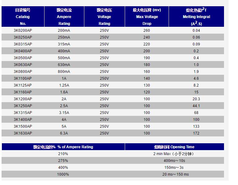 產(chǎn)品名稱: 3K 3*10玻璃慢斷保險絲