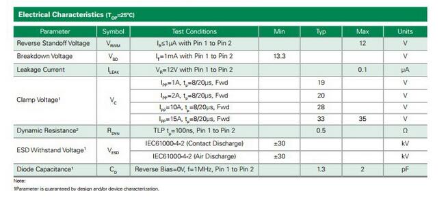 產品名稱: SP4022 Series 1.3pF, 15A Discrete TVS Diode