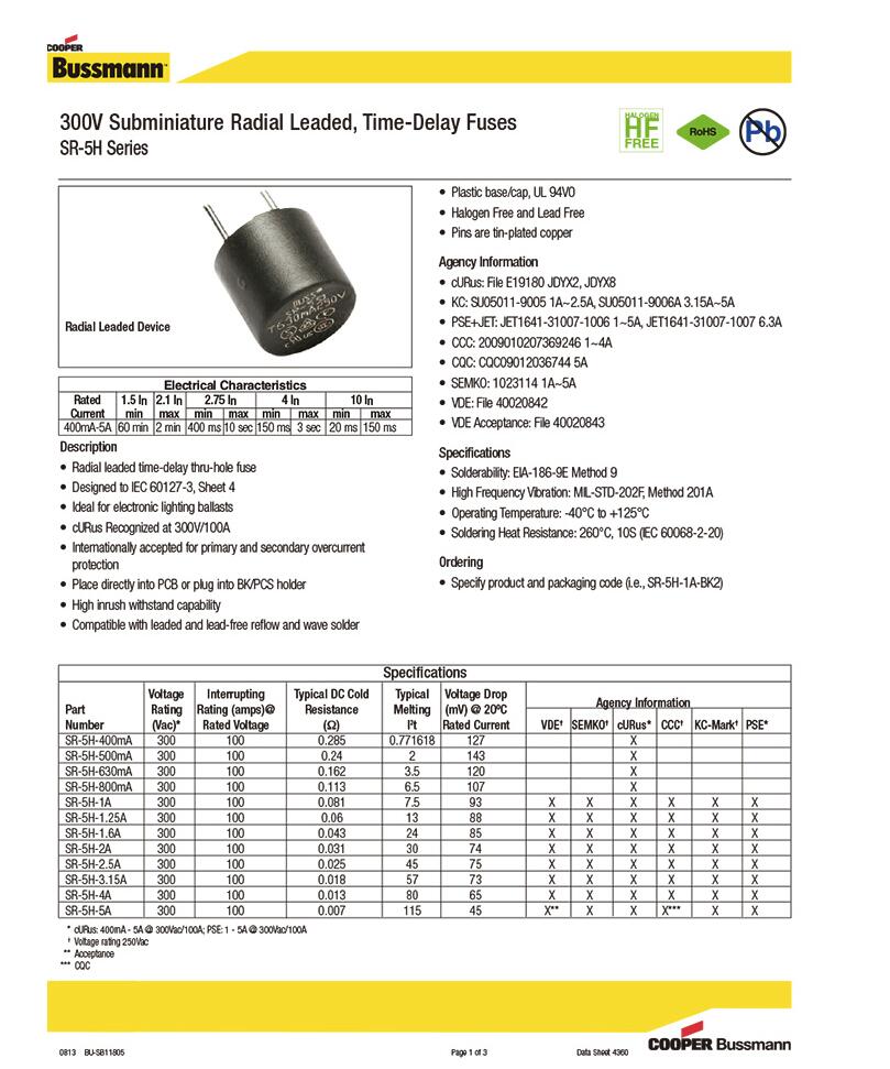 產品名稱: SR-5H-APH 圓形塑封保險絲 黑色保險絲管